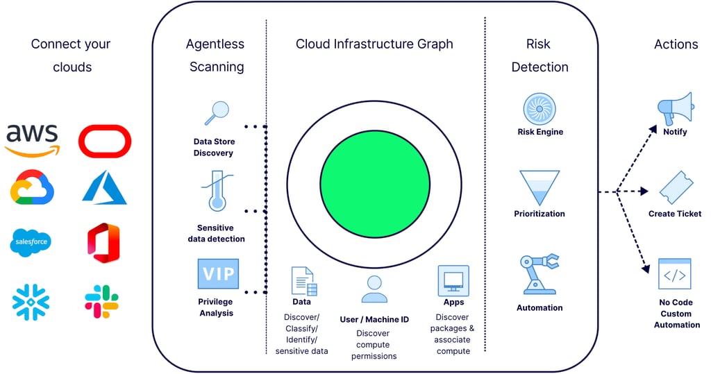 HydrAI automatically scans both structured and unstructured data within your cloud accounts and only collects metadata to add to the HydrAI graph. No sensitive data is collected at any point during scanning.